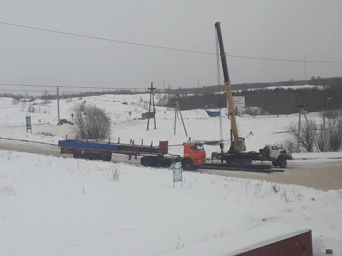 В Озерном на дорогу с большегруза опрокинулись стальные трубы