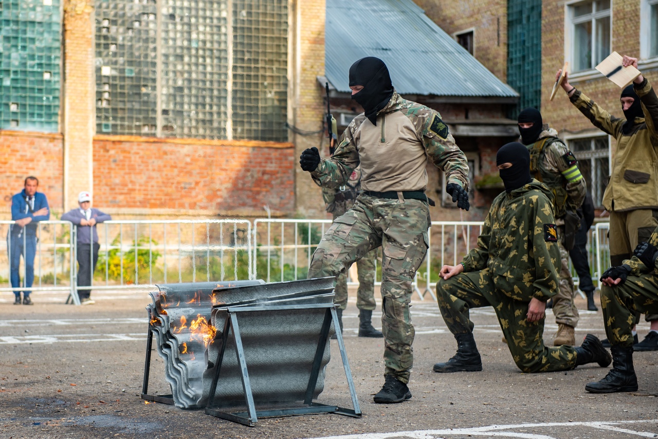 После "террористы" бросили взрывное устройство, которое успешно обезвредили бойцы "Отдела "К". После к ликвидации произошедшего пожара подключился клуб юных пожарных "Барс".