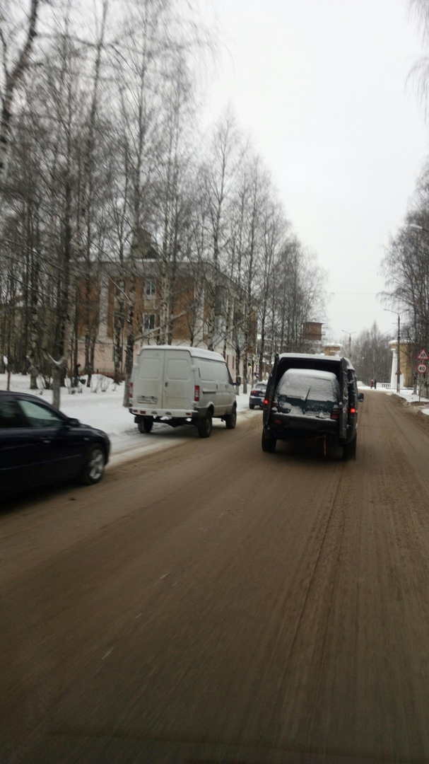 15 ноября местный житель заснял необычную картину - автомобиль "Соболь" вез в салоне "Оку".