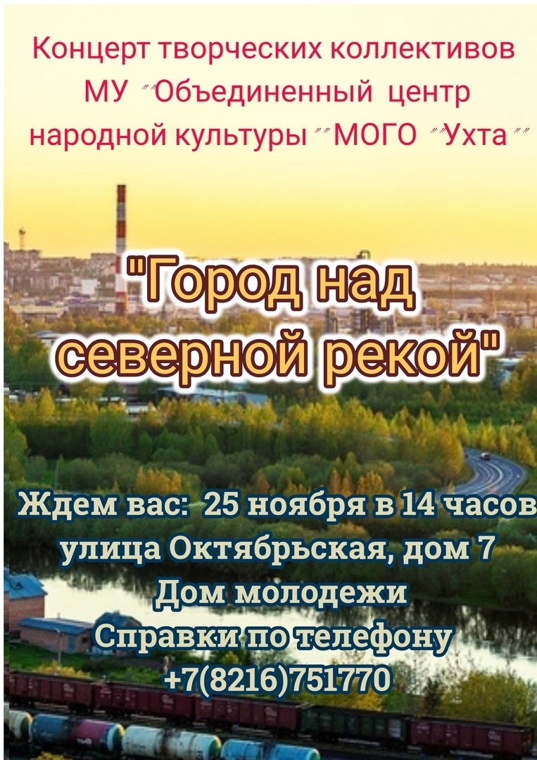 25 ноября, 14.00 час. МУ «Дом молодежи». Концерт творческих коллективов «Город над северной рекой».