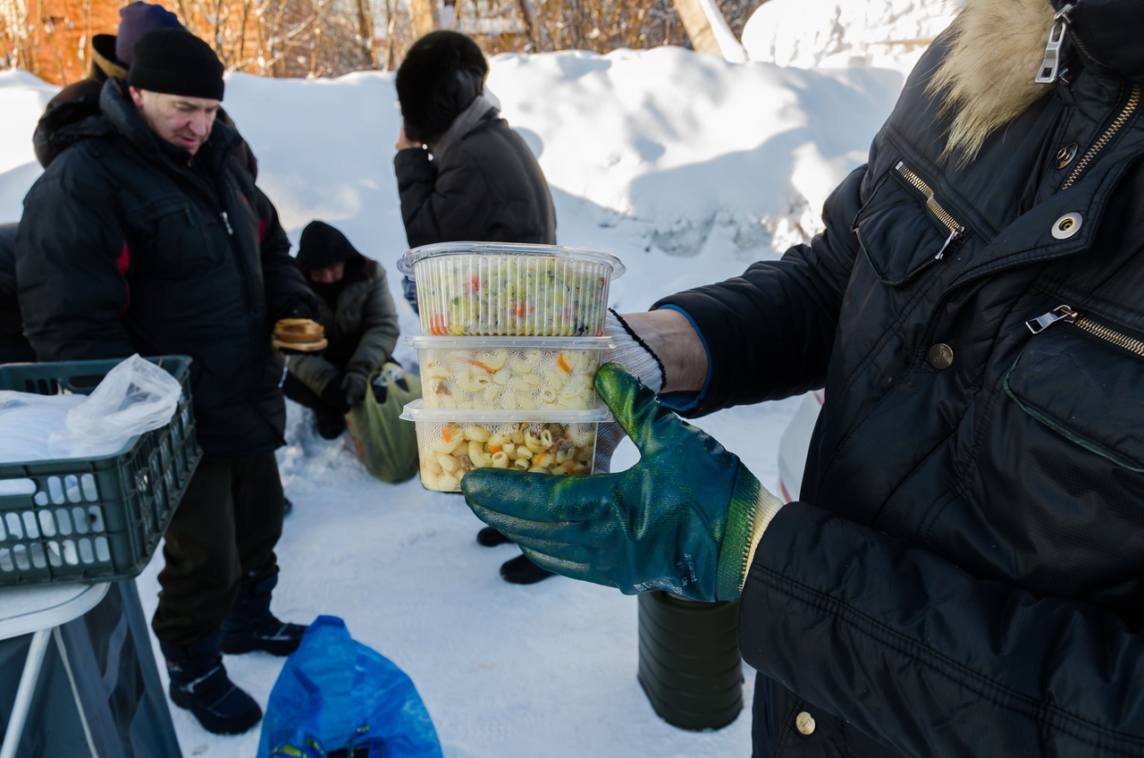 Ухтинские волонтеры кормят бездомных горячими обедами
