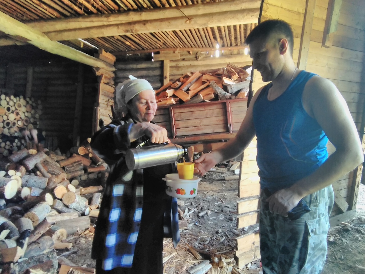 Рабочая встреча представителей Ухты и представителя Сыктывкара в дровнике Кылтовского монастыря. Поговорили, порубили, воды вкусной выпили! - написал Ярослав Брадаускас.