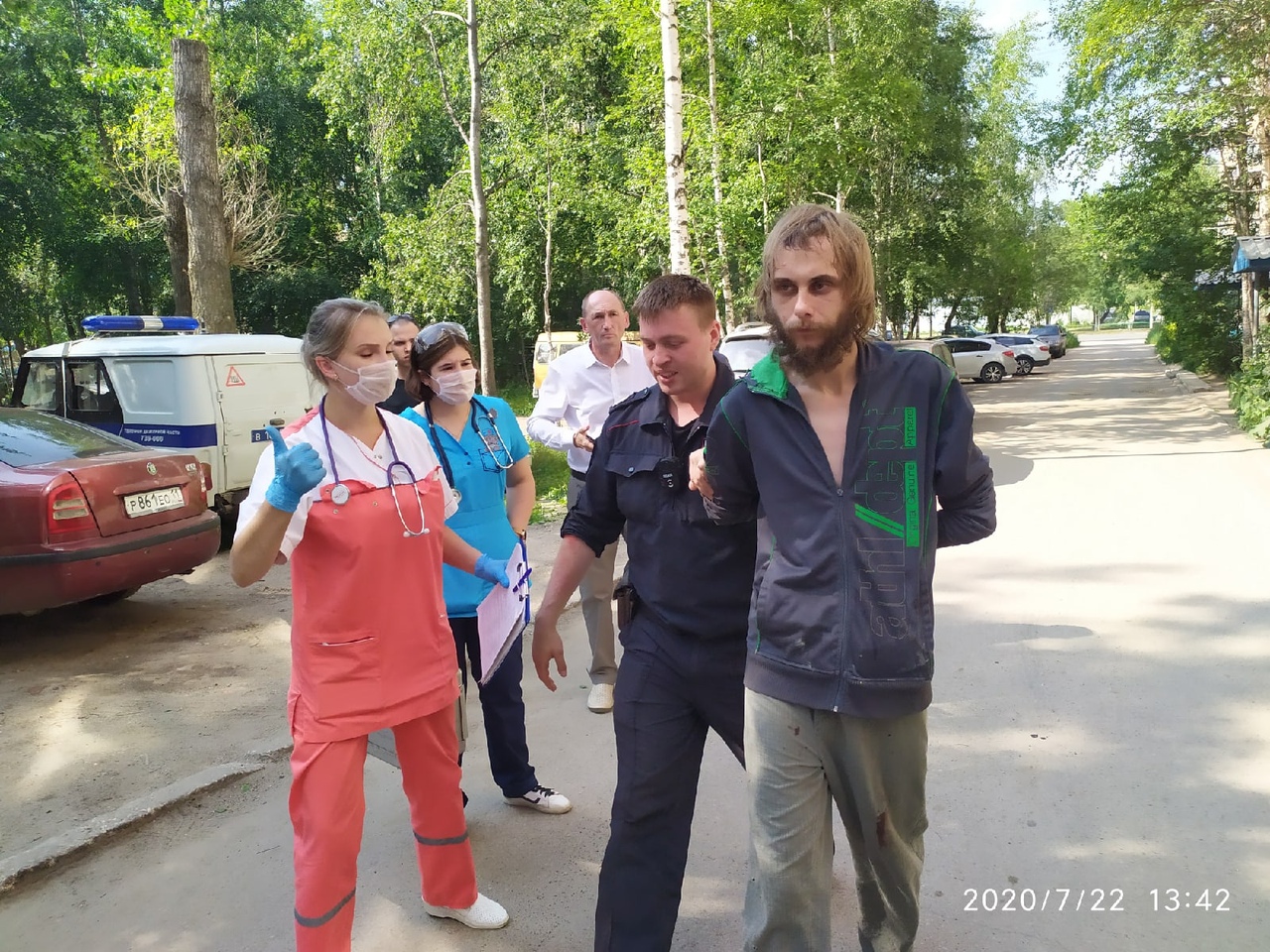 Мужчину увезли сотрудники скорой медицинской помощи. Ему предстоит пройти медицинское освидетельствование на предмет употребления алкоголя и психотропных веществ, а также пройти обследование на психо-эмоциональное сстояние.