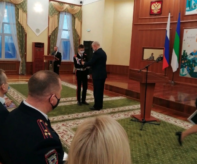 Церемония проходила в рамках акции "Мы – граждане России!» Российского Союза Молодежи и была приурочена ко Дню Конституции РФ. Среди тех, кто за свои заслуги, в торжественной обстановке получил документ гражданина РФ, - кадет 7 "б" класса МБОУ "СОШ №18" г. Ухты, Кирилл Мезенцев! Гордимся! — гласит пост.