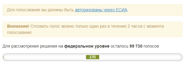 Для выхода инициативы на федеральный уровень потребуется 100 тысяч голосов.