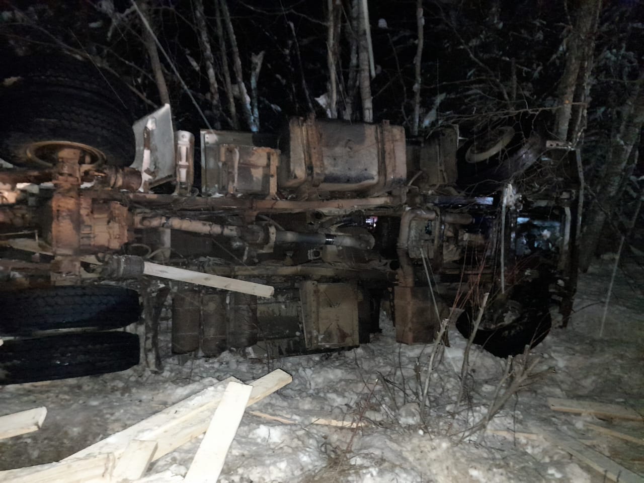 На дороге между селами Усть-Нем и Усть-Кулом 22 декабря в 23:00 произошла дорожная авария. Из прицепа МАЗа, нагруженного древесиной, на дорогу высыпались доски. Вслед за груженым МАЗом двигался такой же аварийно-спасательный большегруз, которым управлял 27-летний мужчина.