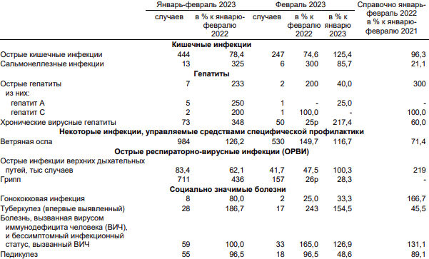 Кроме того, отмечается спад заболеваемости острыми инфекциями верхних дыхательных путей, кишечными инфекциями, гонококком и педикулезом, если сравнивать с таким же периодом 2022 года.