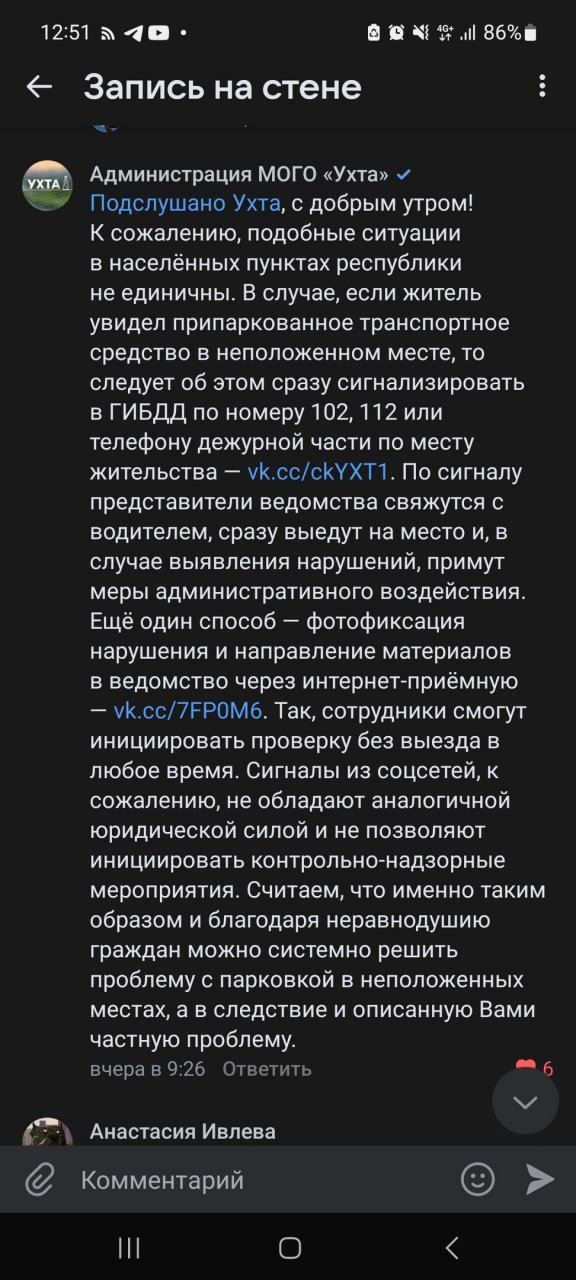 На проблему отозвались специалисты из администрации города Ухты. Они признали, что проблема существует не только в Ухте, во многих других городах Коми, но радикально решить ее пока не удается. В мэрии так же посоветовали фиксировать такие нарушения и писать жалобы на сайт ГИБДД Ухты.