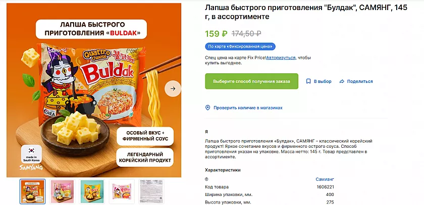 Корейцы умеют делать больно. Лапша «Самянг» — легенда среди любителей острого. В Fix Price нашлась версия «Булдак» 145 граммов. Варится стандартно, но соус там реально жгучий. Если любите проверять себя на прочность — берите. Если нет, можно добавить половину пачки, остальное приберечь для смелых гостей.