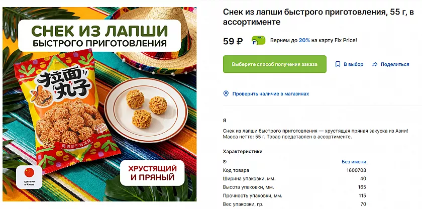 Снек из лапши быстрого приготовления — штука, которая вызывает привыкание. Это не сухой брикет, который надо варить, а готовая хрустящая закуска, приправленная специями. Похоже на те самые корейские снеки, которые герои дорам уплетают пачками. 55 грамм — порция под вечерний сериал.