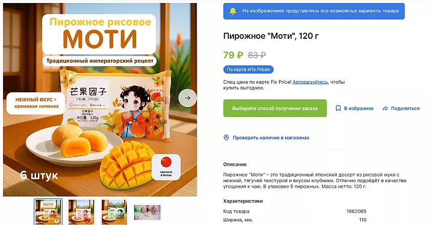 Японские рисовые пирожные давно завоевали мир, но в обычных магазинах они стоят как крыло самолёта. Здесь пачка 120 граммов — копейки. Внутри шесть нежных, тягучих штучек со вкусом клубники. Текстура необычная: мягкое тесто из рисовой муки и внутри будто облачко. Идеально к чаю, особенно если чуть подморозить — тогда напоминает сорбет.