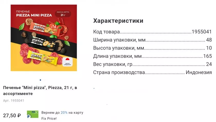 Проходила мимо полок со снеками и увидела забавную упаковку. Печенье «Mini pizza» от бренда Piezza. Думала, очередные сухарики со вкусом пиццы, но нет. Реально хрустящие такие мини-штучки, очень ароматные, с итальянскими нотками. Сделано в Индонезии, кстати. Открыли вечером с детьми — и не заметили, как пачка закончилась. 21 грамм, маленькая, удобно в рюкзак ребенку положить или в машину взять, если в пробке перекусить. Сын уже попросил купить ещё, говорит, в школе с собой круто.