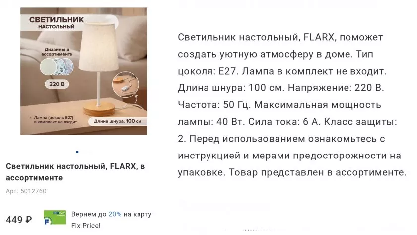 Давно искала небольшой светильник на подоконник в спальне. Нашла вот этот, от FLARX. Цоколь обычный E27, лампочку купила отдельно тёплого света. Длина шнура метр — удобно, розетка у меня далековато. Муж подключил за минуту. Теперь вечером включаем вместо верхнего света, так уютно становится, прямо атмосферно. Максимум 40 ватт, так что не слишком ярко, в самый раз для расслабления. Класс защиты второй — можно не бояться, если дети случайно заденут.