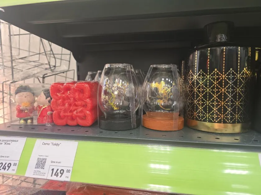 Первое, что бросилось в глаза, — свеча в стеклянном стакане с рельефным узором. Она выглядит так, будто сошла с полки дорогого интерьерного бутика, но ценник остался родным, фикс-прайсовским.