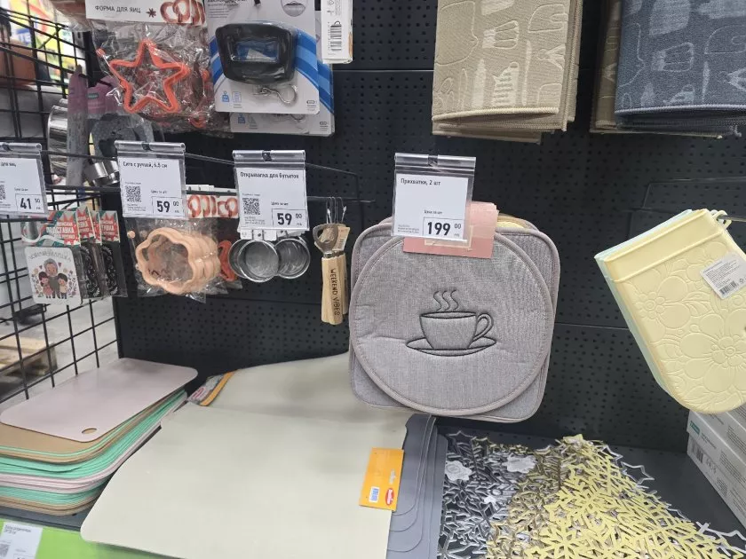 Сразу беру курс на отдел кухонных органайзеров. В голове держу железное правило: ничего дороже 100 рублей за штуку и только то, что реально решит мои проблемы с хранением. Первое, что бросается в глаза — стопка разноцветных органайзеров для специй. Рядом призывно поблескивают силиконовые коврики и разномастные магниты. Корзина пока пустая, я хожу, трогаю, мну, кручу — качество должно быть на ощупь.