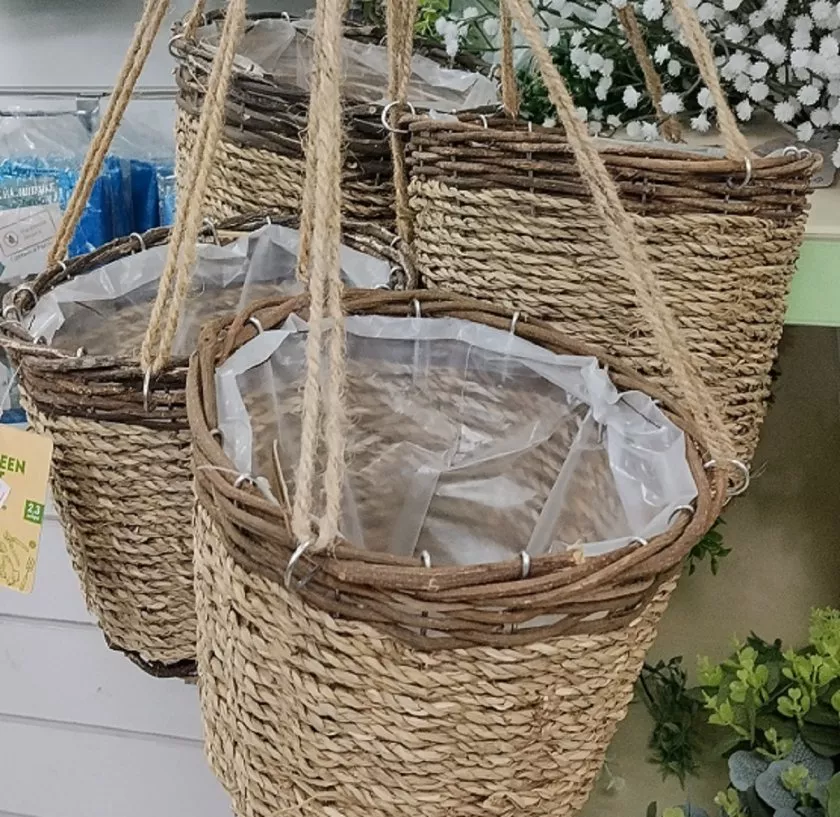 Выглядит натурально. Такое кашпо не стыдно поставить на видное место — оно напоминает плетёные корзинки из дорогих садовых каталогов.