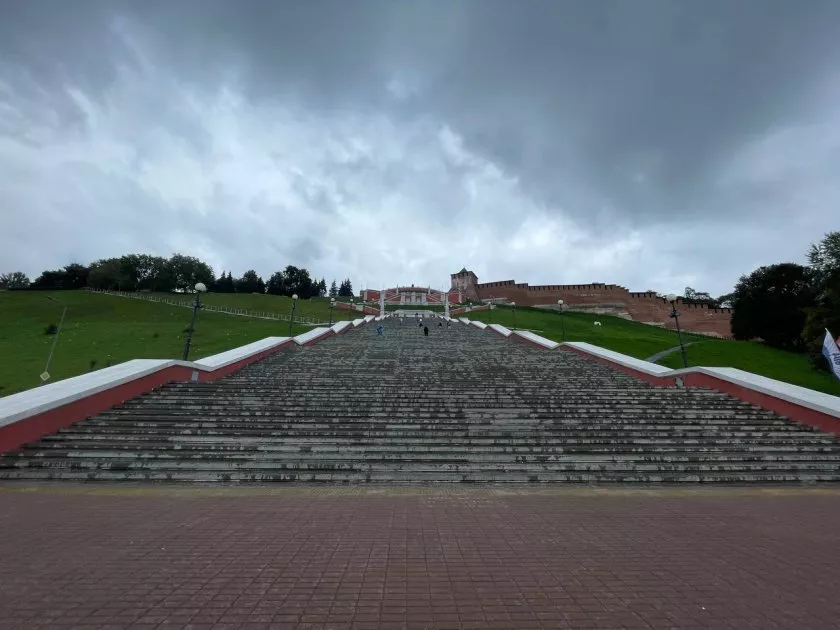 Чкаловская лестница, которая петляет по склону, приведет вас к набережной. Гулять там можно бесконечно, особенно на закате. Кстати, нижегородцы не зря спорят с самарцами за звание «столицы закатов» — вечернее небо здесь действительно волшебное.