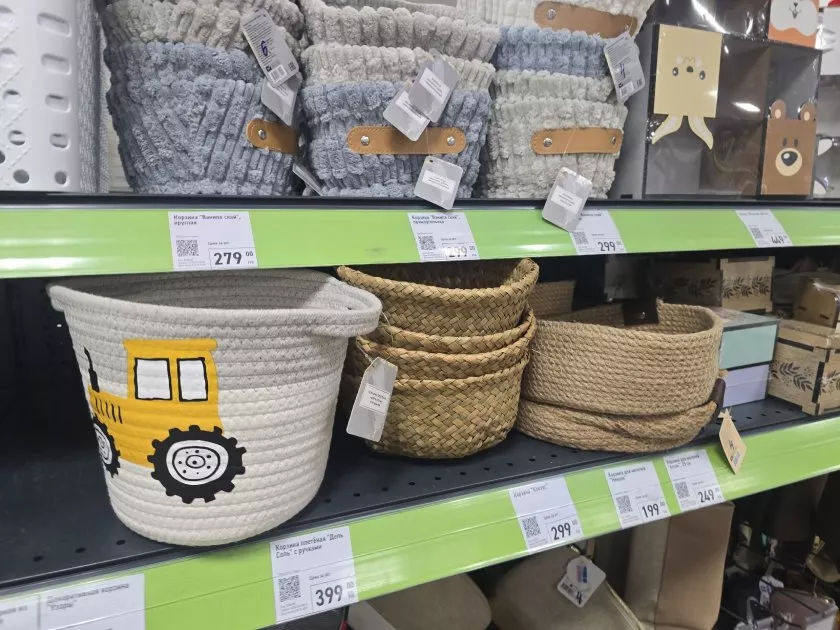 Следующая категория — пластиковые и тканевые органайзеры, призванные навести порядок внутри шкафов и ящиков. Здесь ассортимент Fix Price порадовал разнообразием решений для разных задач.